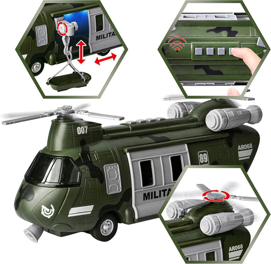 JOYIN Militärfahrzeuge Spielzeug-Set aus Transporthubschrauber und Militär-LKW