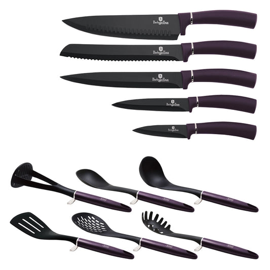 Messer und Küchenutensilien 12-teilig lila/schwarz